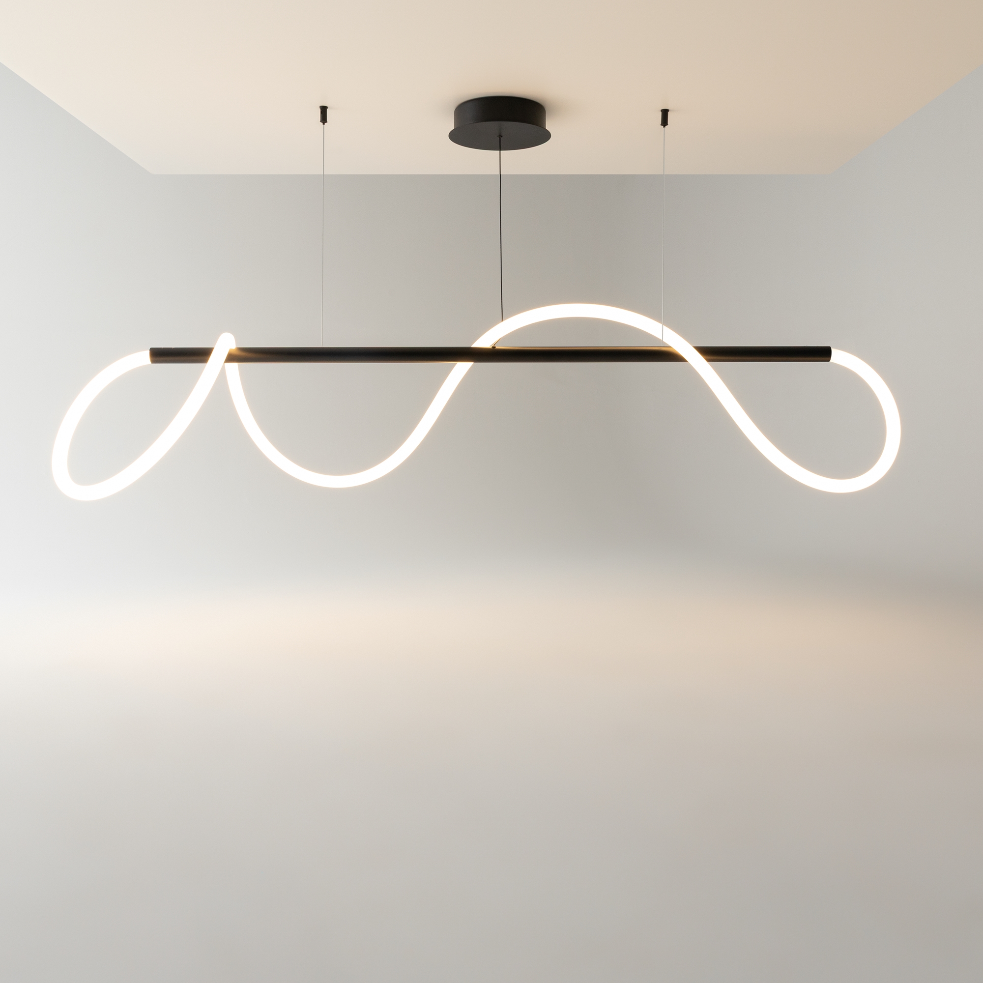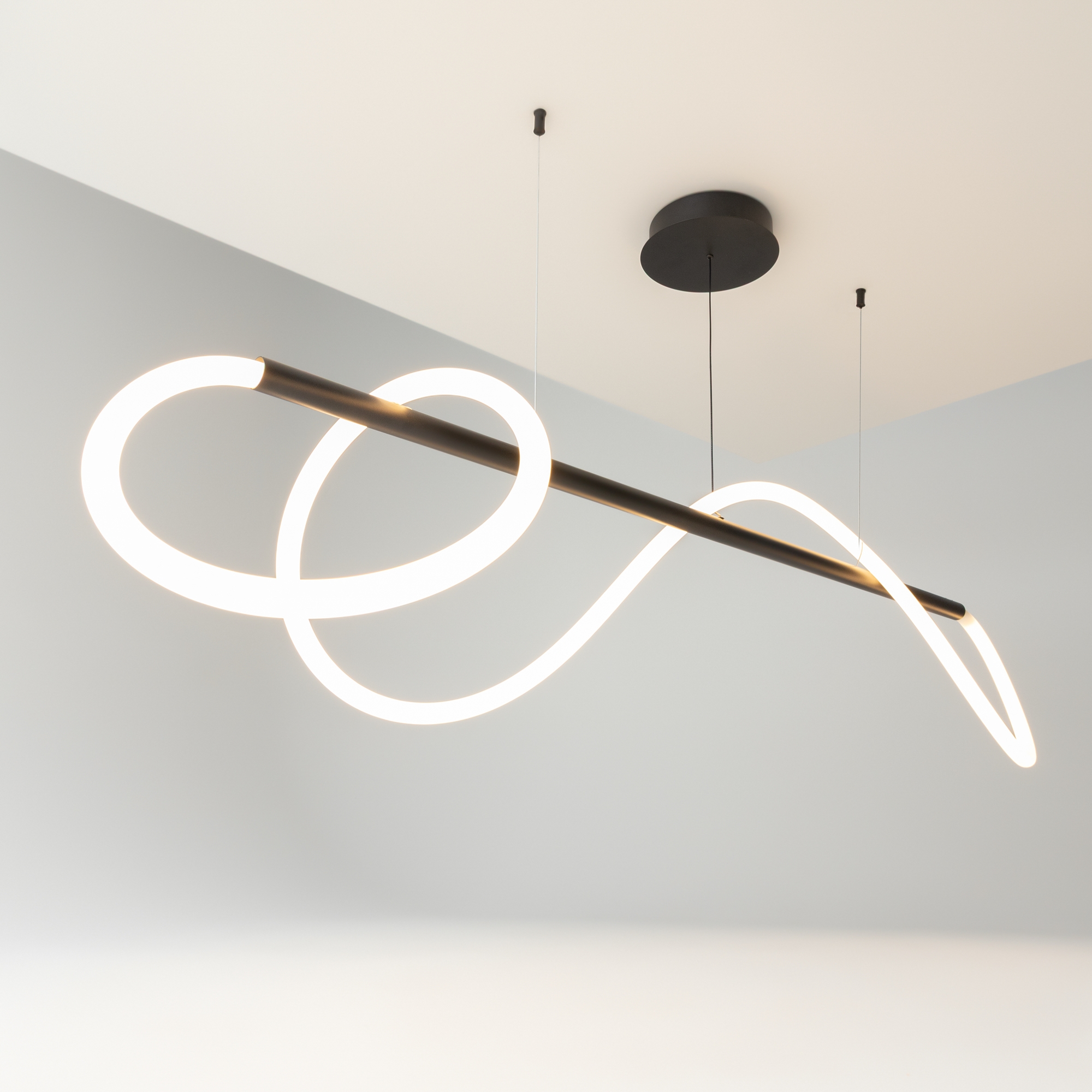 Алюминиевый корпус. Оттенки – золотой, матовый черный. Рассеиватель двух видов – силиконовая трубка и сверхкрепкий жгут (не желтеет со временем, обладает высокой прочностью). Мягкое равномерное свечение благодаря высокой плотности светодиодов. Цветовая температура 3000К. LED-источник света.